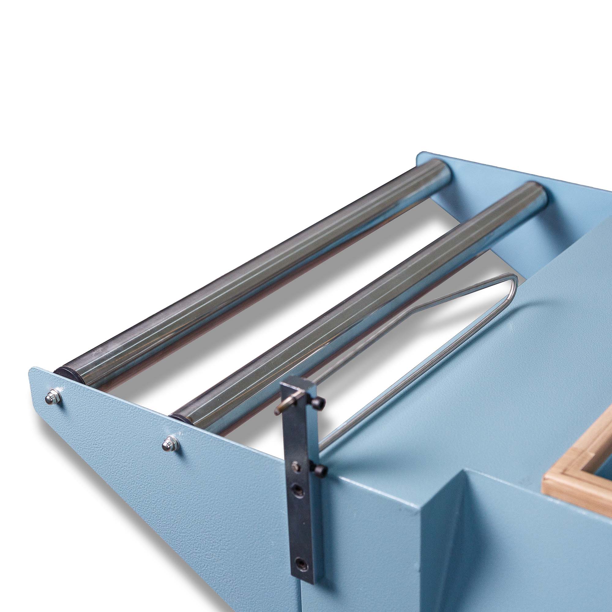 - Подача пленки: Рулон пузырчатой пленки размещается рядом на стойке или просто на столе.