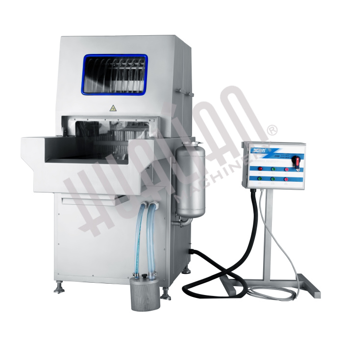 Инъектор для мяса представляет собой пищевое производственное оборудование, обеспечивающее равномерное распределение жидкости, проникая внутрь изделия через множество игл. Это помогает улучшить вкус и текстуру мяса, а также сократить время маринования и сохранить первоначальный вид.