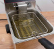 Фритюрница выполнена полностью из нержавеющей стали, включая корзину. Плотно закрывающаяся крышка и ручки из термостойкого материала обеспечивают безопасность процесса жарки. Кроме того, для повышения безопасной работы предусмотрено автоматическое отключение при понижении уровня масла до критического уровня.