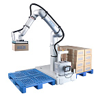 Объем упаковки. Для высоких объемов (30+ паллет/час) подходят автоматические модели, например, робот-паллетайзер HRP-20/6В с максимальной скоростью вращения захвата до 3,5 м/с. Для малых предприятий актуальны мобильные роботы по типу модели HRP-25/5A, которые отлично подходят для поддонов любого типа.