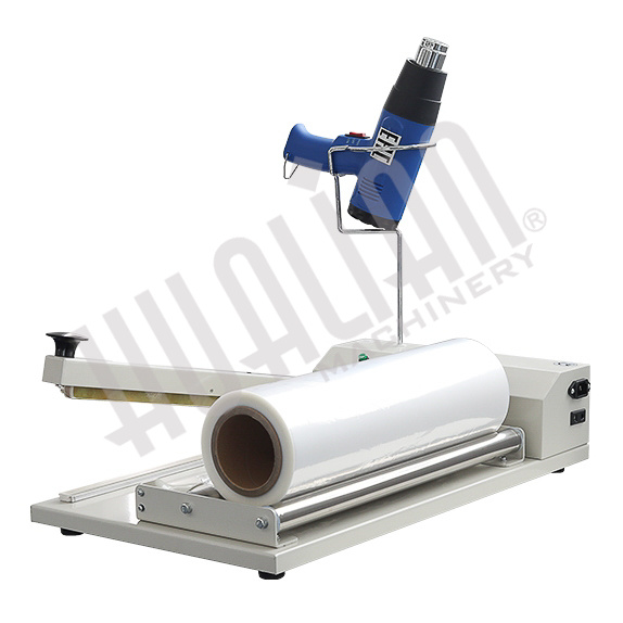 Машина с термическим способом обработки упаковки. На продукт надевается термоусадочный колпак (рукав), который затем обрабатывается горячим воздухом. Колпак сжимается, плотно облегая предмет.