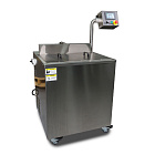 Оборудование для упаковки продуктов в термоусадочную плёнку, которая плотно облегает предмет при нагреве. Процесс выглядит так: после упаковки продукта в пакет он на несколько секунд помещается в емкость с горячей водой. Под действием тепла пакет быстро уменьшается и плотно обтягивает продукт. На выходе вы получаете надежную вакуумную упаковку с прекрасным внешним видом. Популярная модель термоусадочного танка DT-6050 имеет емкость для воды 149 л. и способна работать в температурном диапазоне от 0 до 100 °С.