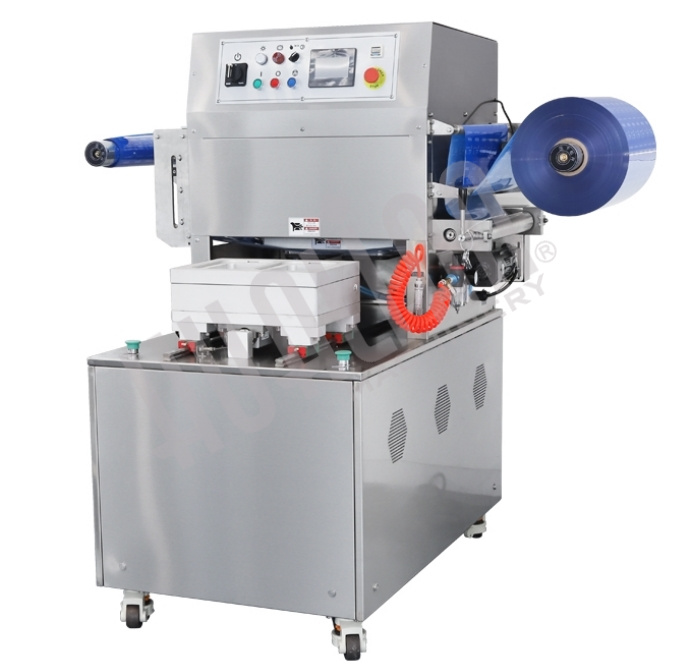 Ручной запайщик лотков HTS-210R (трейсилер) предназначен для запайки лотков с продовольственной и непродовольственной продукцией при помощи оператора. Готовый контейнер получается надежным и герметичным. Несмотря на ручной тип управления, устройство сокращает количество действий вручную. Например, благодаря механизму обрезки не нужно обрезать пленку вручную. Это происходит автоматически вместе с запайкой.