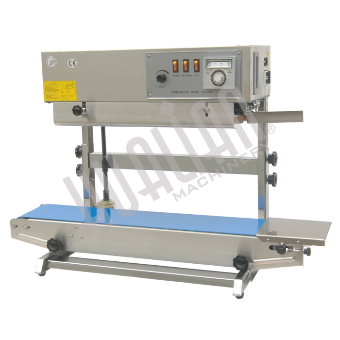 Роликовый конвейерный запайщик FRM-980I непрерывного типа предназначен для горизонтальной запайки небольших по размеру и весу пакетов (при сваривании пакет подается плашмя). Подача пакетов – справа налево. Внешней отличительной особенностью данной серии запайщиков является наличие вынесенной на верх корпуса панели управления.