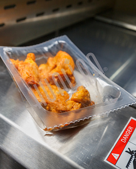 Оборудование предназначено для формирования герметичной упаковки из термоформовочной плёнки, которая защищает содержимое от окружающей среды, продлевает срок годности продуктов. Такая упаковка подходит для овощей, фруктов, мяса и рыбы, а также непищевых товаров, например, шприцов или медицинских наборов.