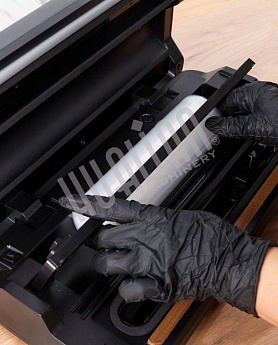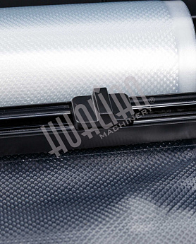 - Надёжная запайка – широкая планка (320 мм) и прочный двойной шов (2 мм) гарантируют герметичность упаковки даже для крупногабаритных продуктов.
