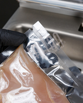 - Подготовка упаковки: продукты помещаются в специальный пакет, предназначенный для вакуумирования;