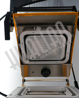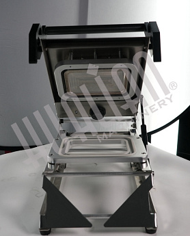 Для упаковки продукции достаточно поместить лоток, покрытый пленкой в зону упаковки и опустить крышку. Пленка прочно припаивается к лотку, остатки обрезаются автоматически.