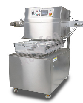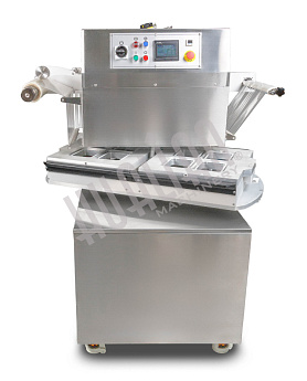Ключевое преимущество HVT-450R — возможность параллельной работы оператора и машины. Пока одна зона выполняет запайку, вторая может загружаться новыми лотками, что минимизирует простой и ускоряет процесс. Это особенно важно для пищевой промышленности, где нужны скорость и высокая производительность.