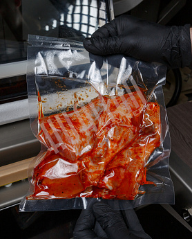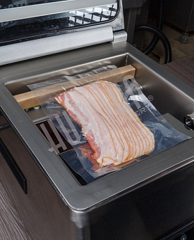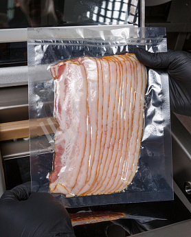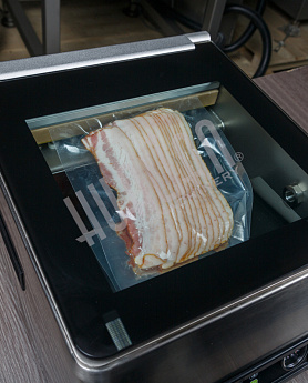 Результаты тестирования: устройство продемонстрировало высокую эффективность при упаковке различных продуктов, включая копченую колбасу, нарезанный бекон, куриные ножки в маринаде и шпикачки. Менее чем за минуту упаковщик создавал качественный вакуум и надежно герметизировал продукты в пакете. В ходе теста было получено 120 прочных и аккуратных упаковок каждого продукта, полностью готовых к хранению, транспортировке и продаже.